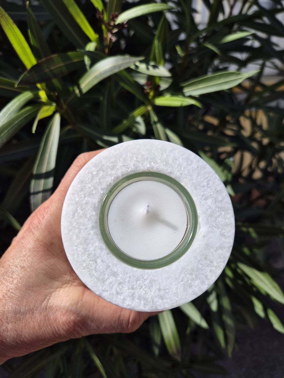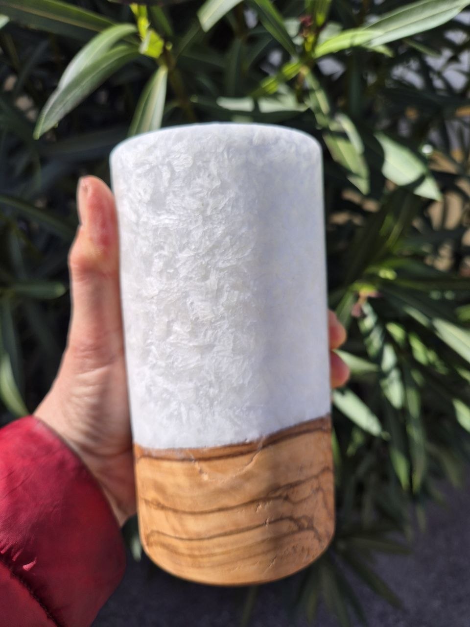 Stilvoll und sehr praktisch ist diese Kerze mit echtem Holz, die durch einfaches Austauschen des Teelichtes nie abbrennt.